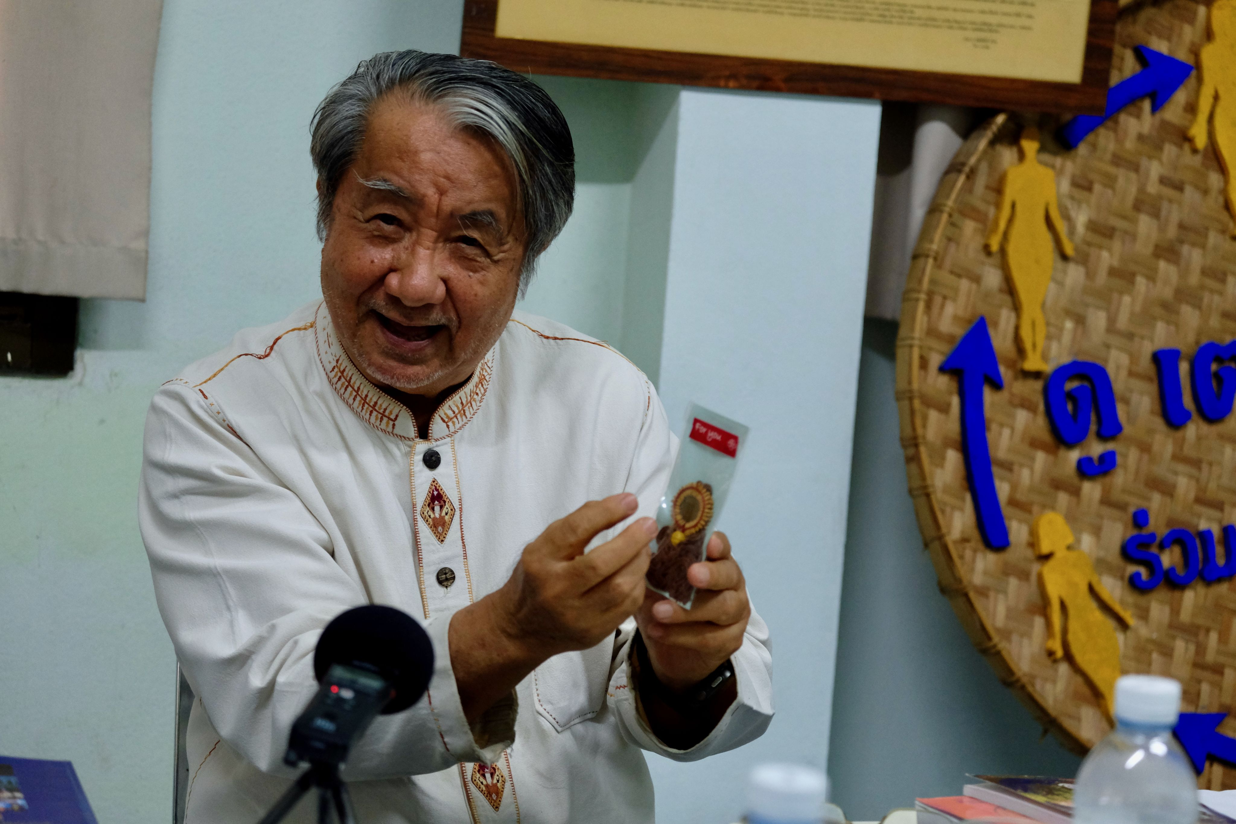 Fr Niphot told LiCAS news the origin of the Nine Grains of Rice. (Photo by Peter Monthienvichienchai / LiCAS.news)