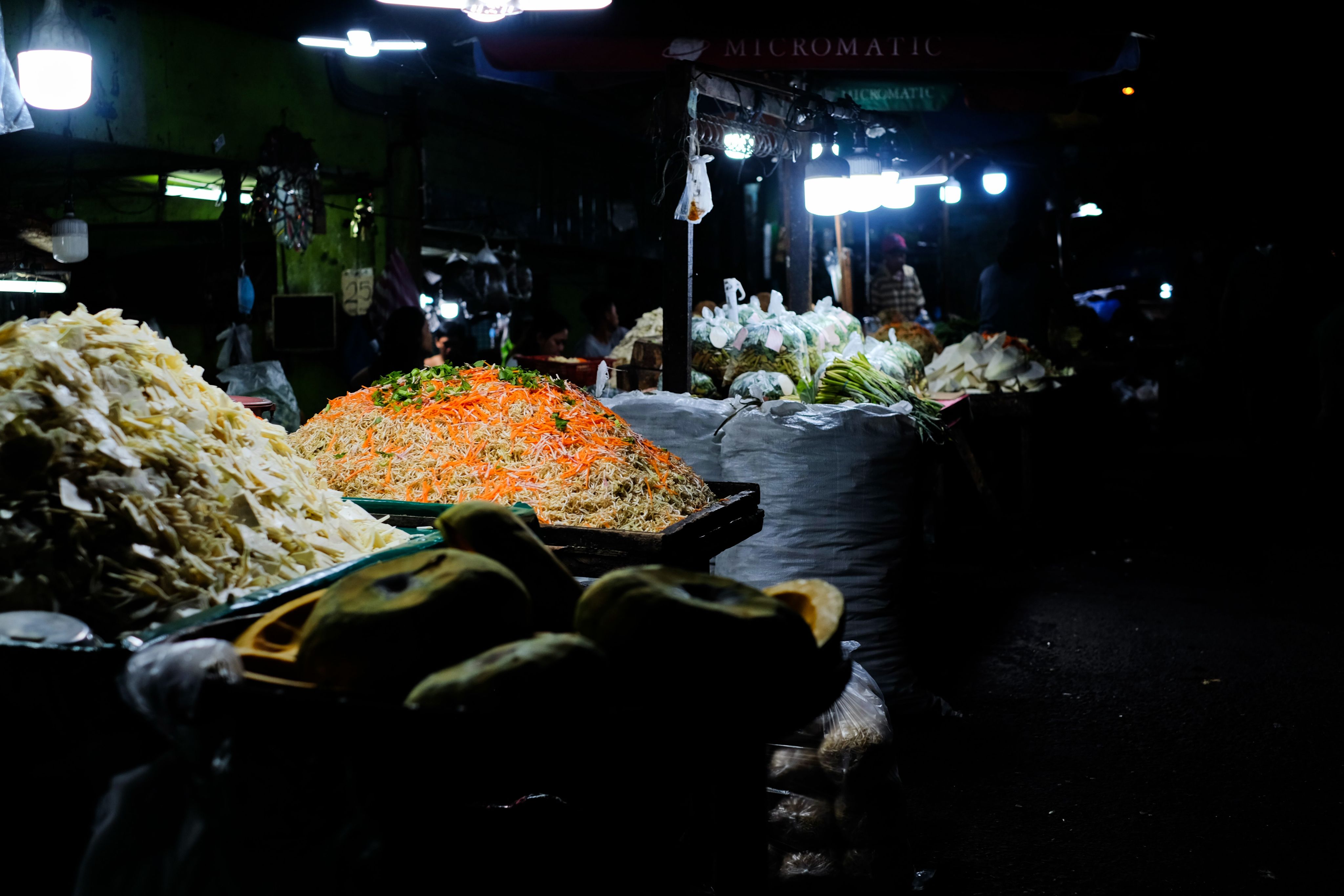 Midnight calm envelops the public market in Balintawak district in the outskirts of the Philippine capital Manila. The heaps of fruits and vegetables on display conceal a crisis brought about by climate change - less than half of the usual produce are arriving and those that do are rotting sooner.