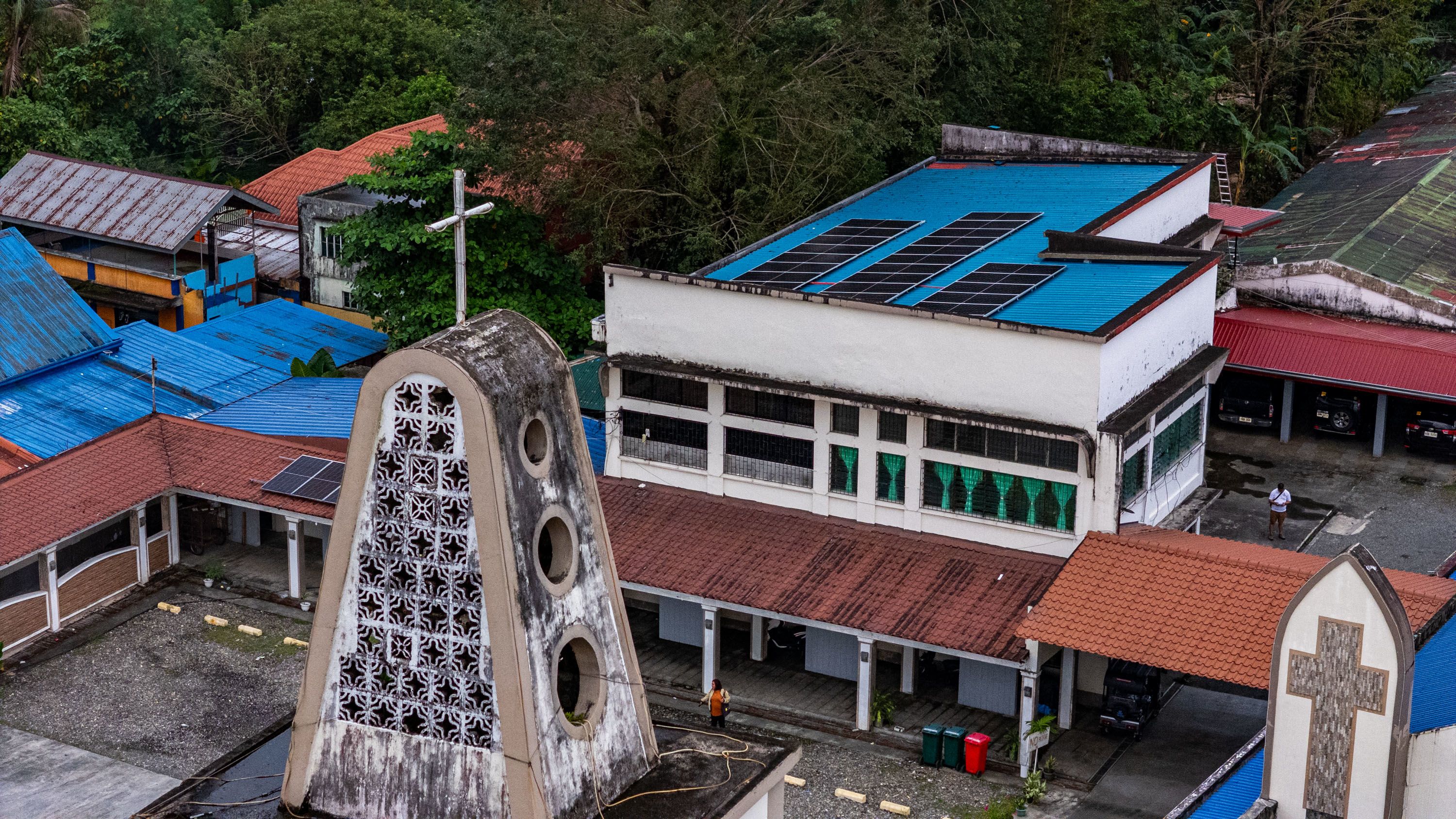 - Solar panels are installed on the roof of the Good Shepherd Parish complex in Victoria town, Oriental Mindoro, as part of the parish’s transition to renewable energy.
