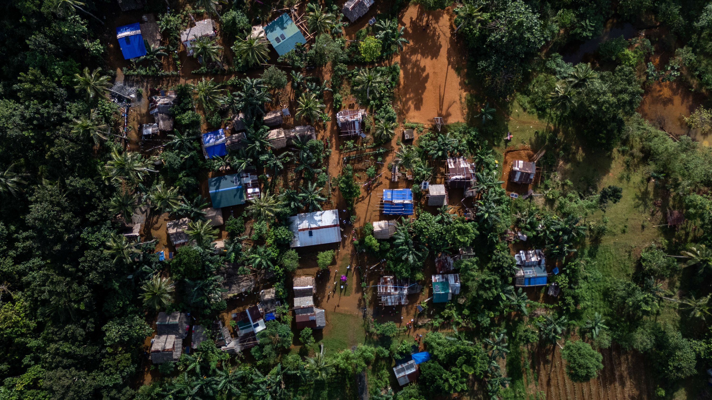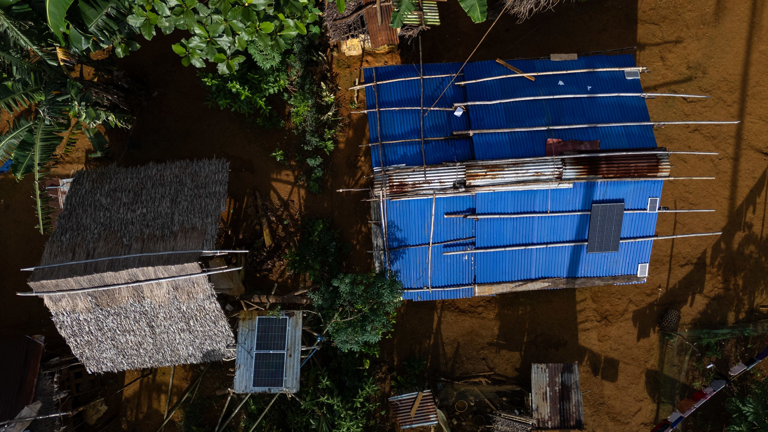 An aerial view shows homes with newly installed solar panels in a Mangyan-Tadyawan community in Victoria town, Oriental Mindoro.