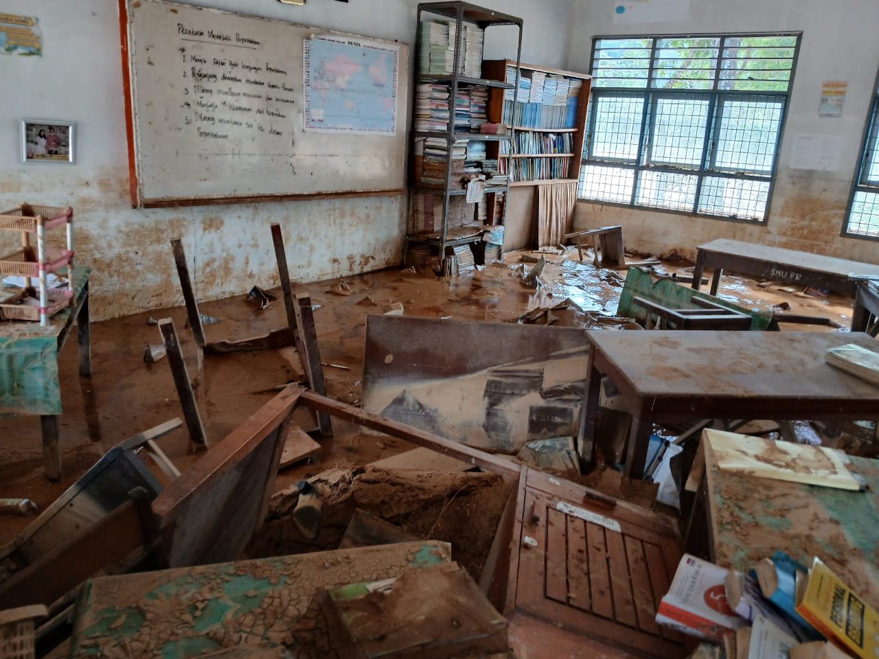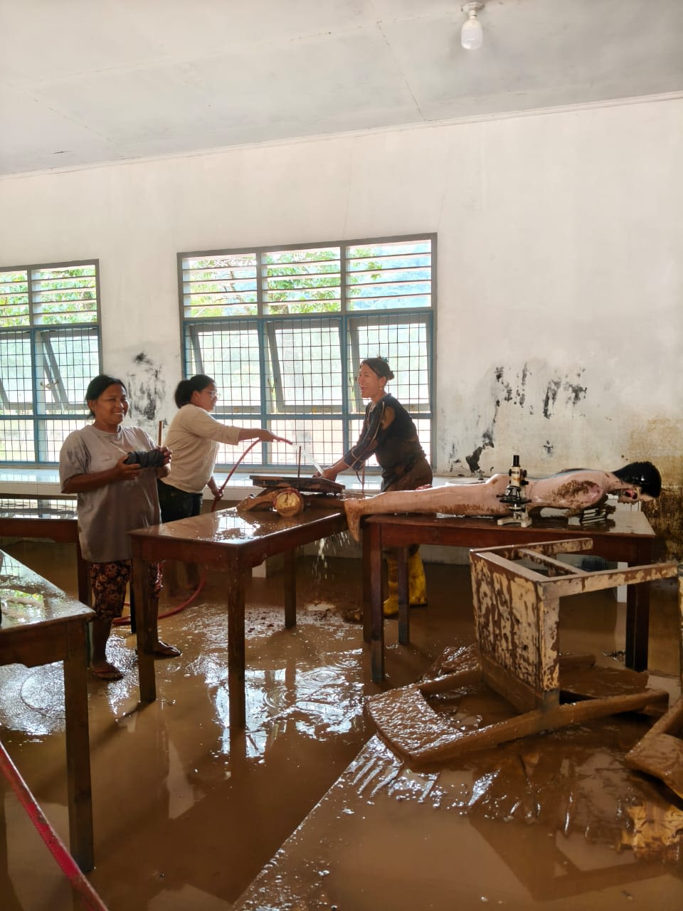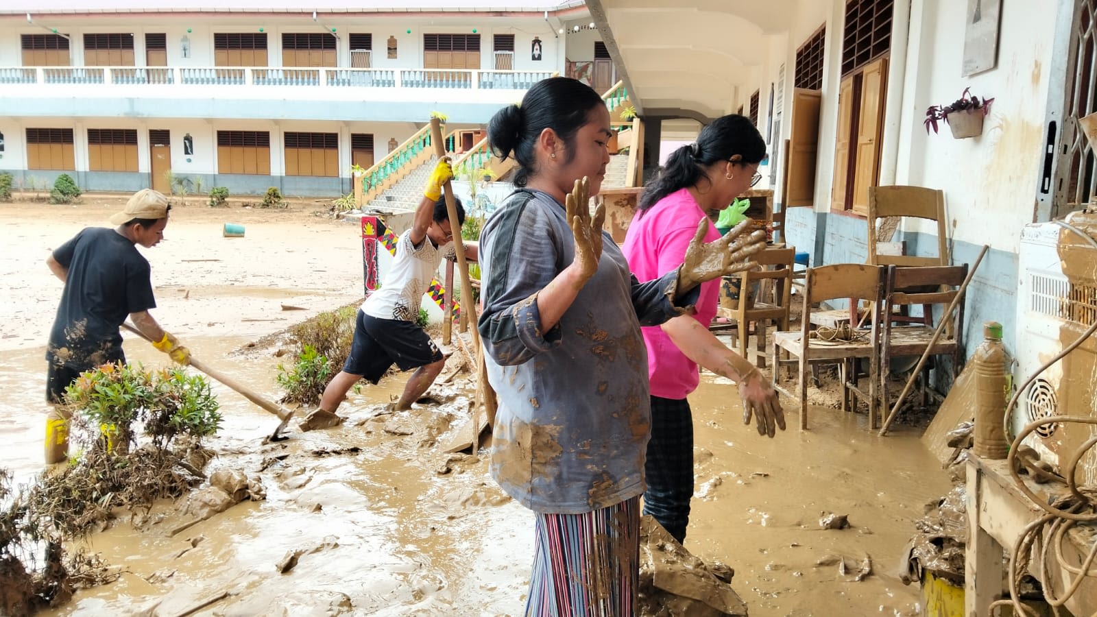 Nearly two months later, thick mud remained in several affected areas, including school campuses, dormitories, and health facilities.