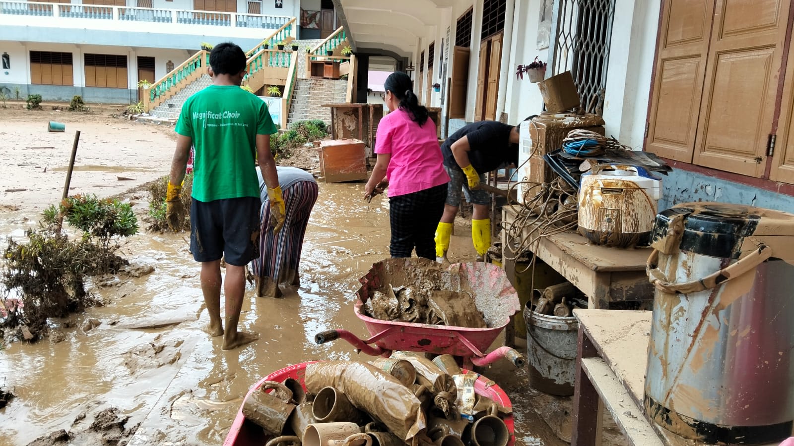 In Aek Tolang, mud reaching one to two meters deep blanketed church facilities and formation complex, including dormitories, classrooms, and a clinic. Damaged and impassable roads severely hampered access to many communities.