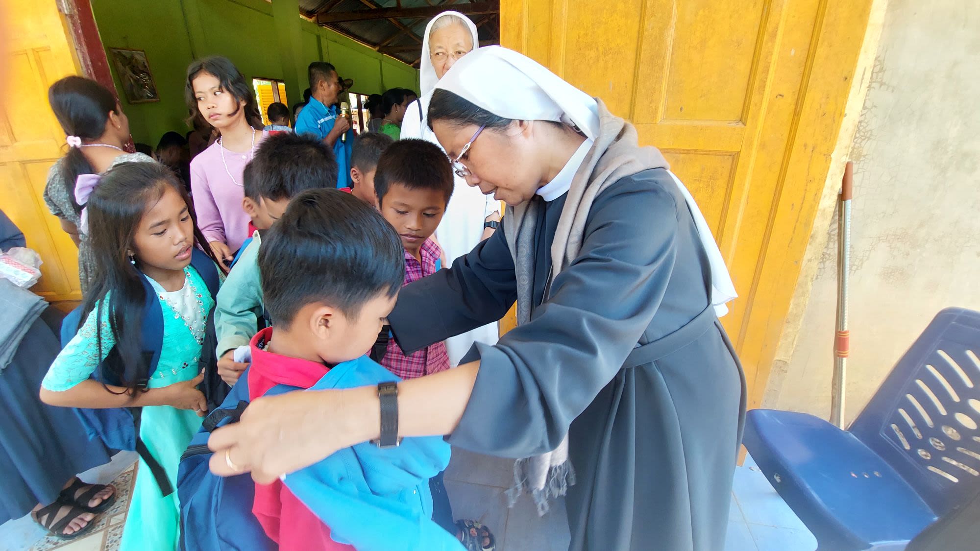Through the diocese, assistance packages were distributed to affected schools, including uniforms, shoes, socks, stationery, and learning materials for approximately 300 students.
