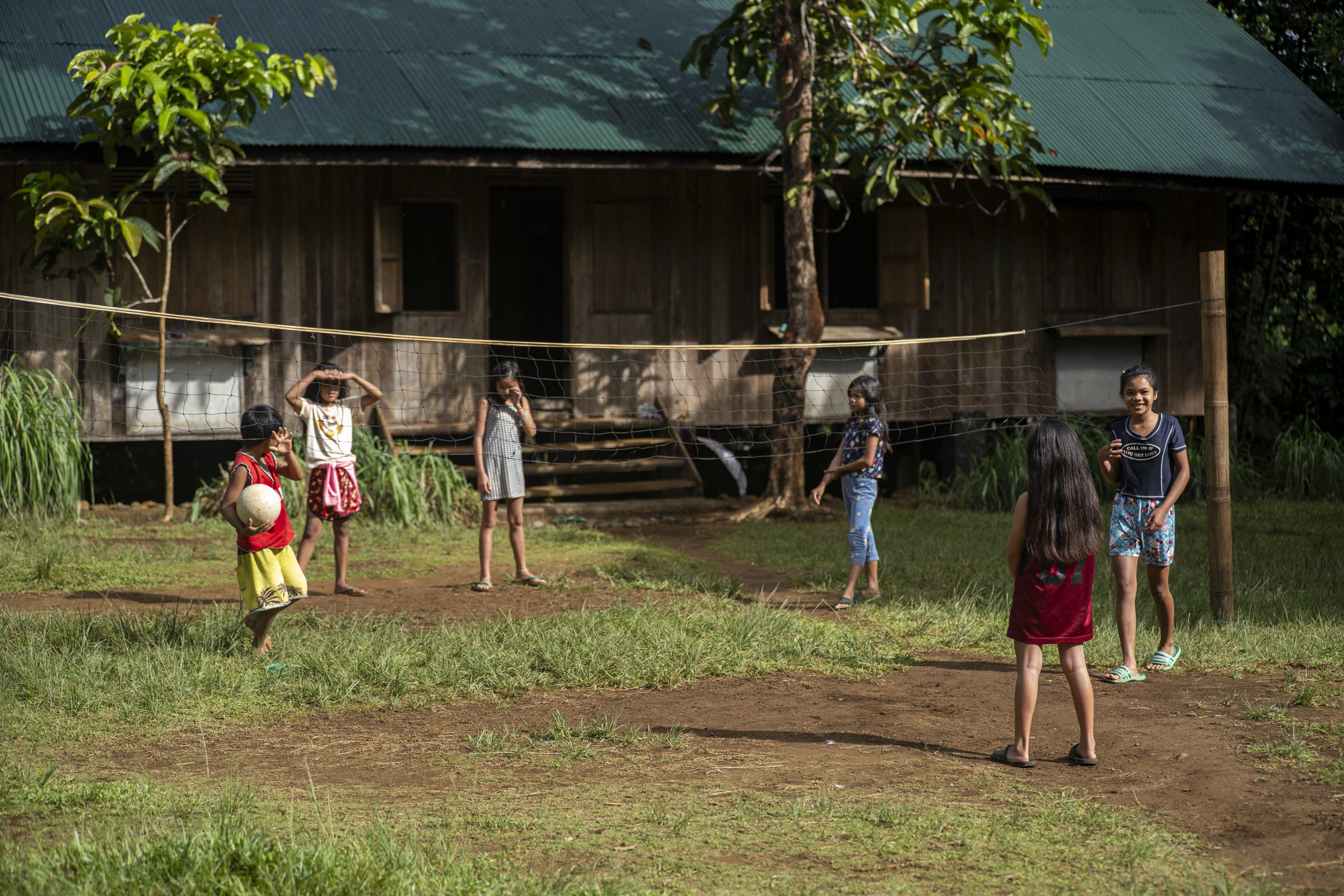 Students of Apu Palamguwan Cultural Education Center (APC), an Indigenous Peoples' school located in Bendum village, play volleyball.