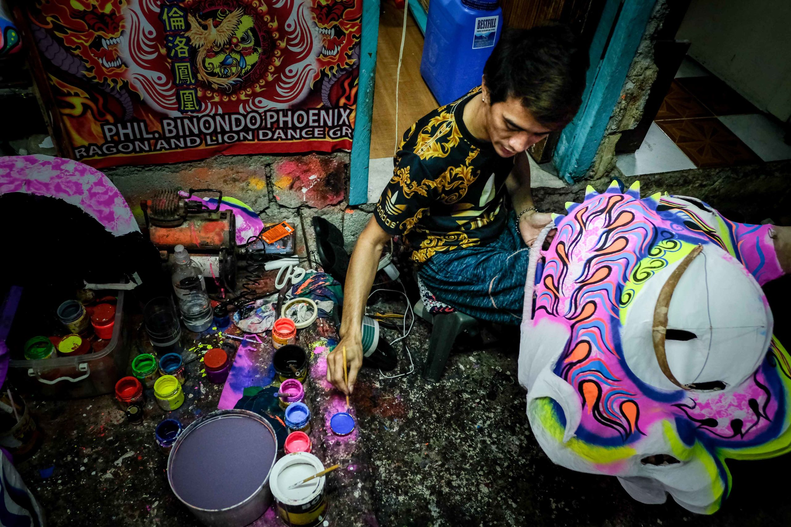 The Sicat family works together to prepare dragon and lion heads for display in business establishments in Manila’s Chinatown.